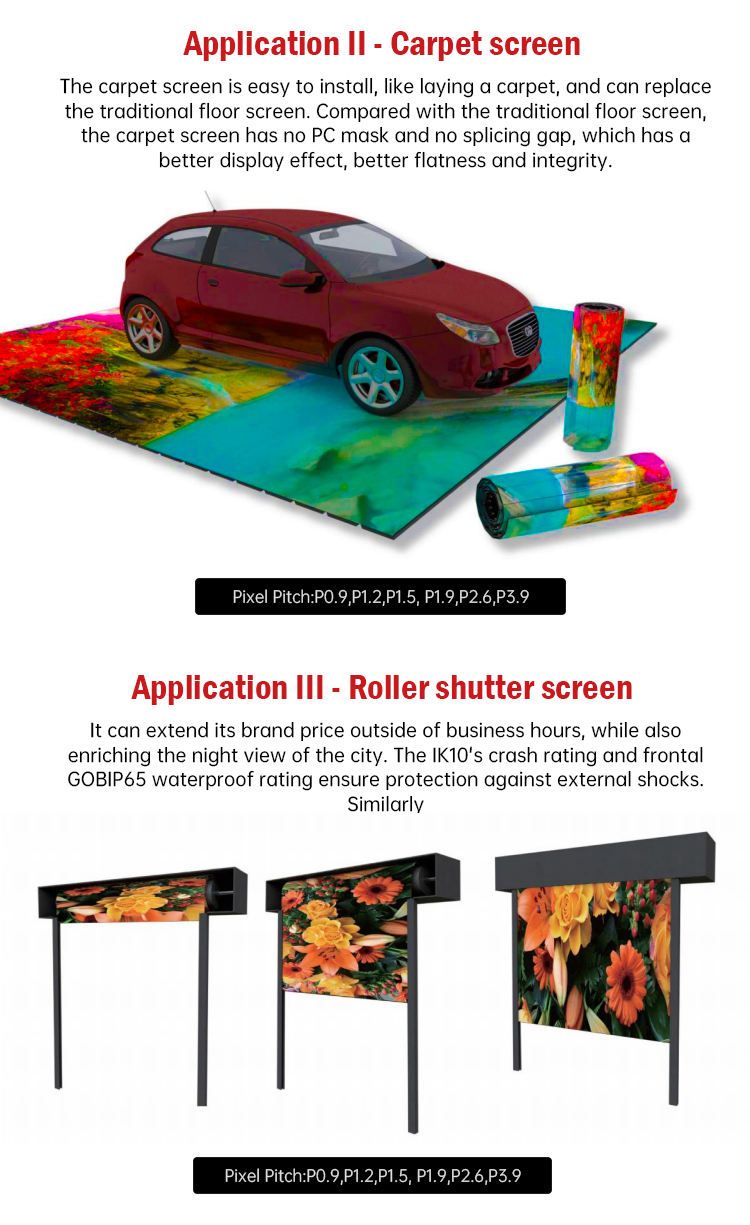 Светодиодный экран «Волшебный ковер» также можно назвать светодиодным дисплеем на колесиках — это новый продукт., это гибкий светодиодный экран, который можно повесить, поднятый, опущен, свернутые или сложенные механическими устройствами для проката мероприятий, или положить на землю для использования в качестве напольного светодиодного видеоэкрана для танцев.